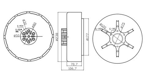 نقشه ابعادی موتور 25 کیلووات براشلس BLDC گشتاور بالا توان بالا