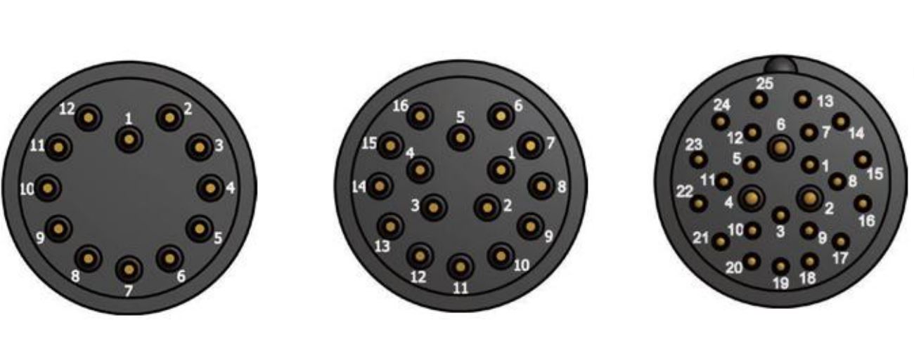 چیدمان کانکتور آب بند 12، 16 و 25 پین دایره ای مدل HC-U12-2501